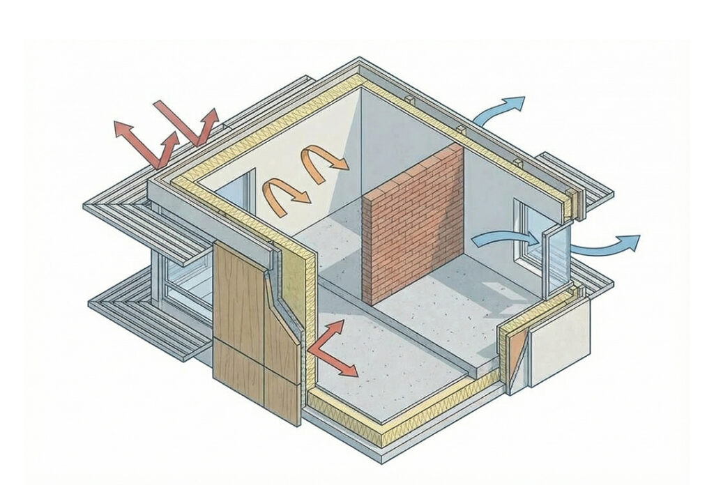High-performance building fabric provides natural advantages for cooling through superior insulation that works bidirectionally keeping heat out during summer as effectively as retaining warmth in winter. Combined with strategic shading design, thermal mass optimisation, and natural ventilation opportunities, fabric-first approaches can dramatically reduce mechanical cooling requirements while maintaining comfort standards. These passive strategies become increasingly valuable as they avoid the substantial embodied carbon impacts of mechanical cooling systems and eliminate dependence on refrigerants with high global warming potential.