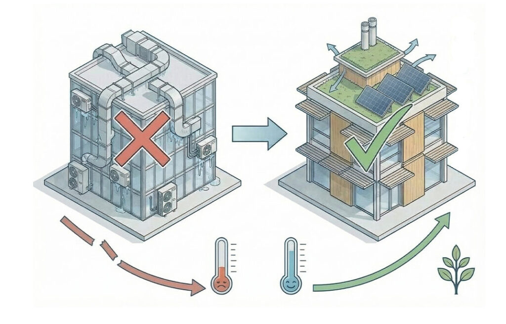 The intensifying focus on heating demand reduction in high-performance buildings must expand to address the growing challenge of cooling requirements. As climate change progresses, the buildings we design today will face dramatically different thermal conditions throughout their operational lifespans, requiring adaptive strategies that maintain comfort while minimising energy consumption and avoiding the environmental pitfalls of retrofitted mechanical cooling systems.